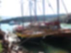 The two sailing ships, the PEGASUS and the AFRODITI, seen together in Nea Kameni. Behind them is the small passenger boat MANOLIOS of Kamari Tours, which looks like a former fishing boat.